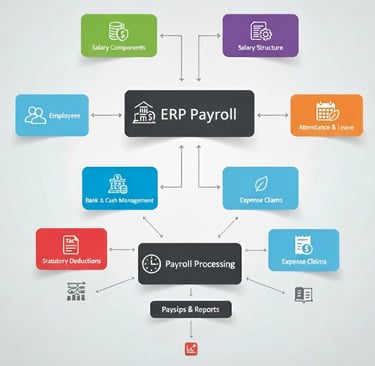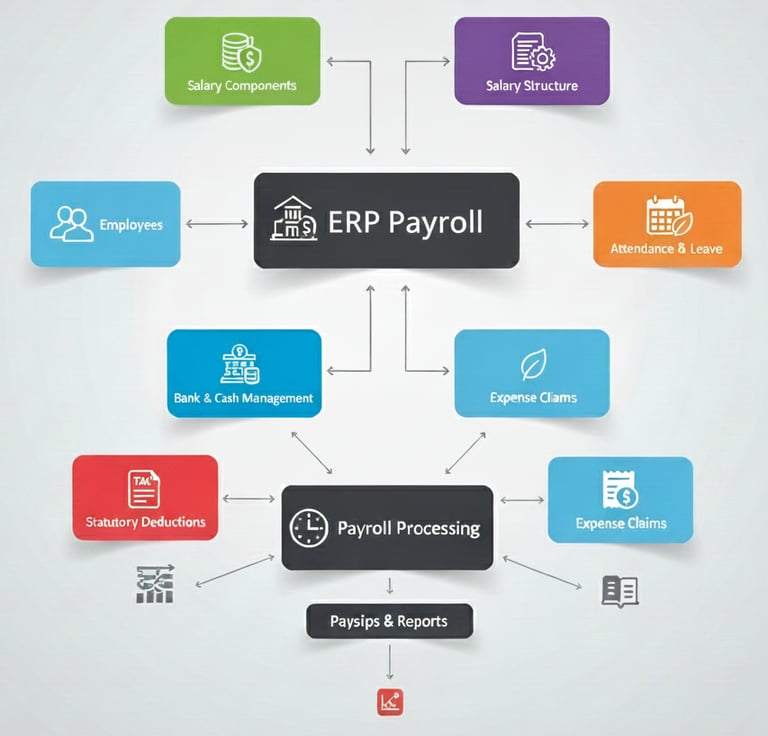 Payroll refers to the management of employee salary records, including wages, bonuses, deductions, and net pay.