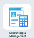 Chart of accounts setup, financial reports, invoicing, and tax management.