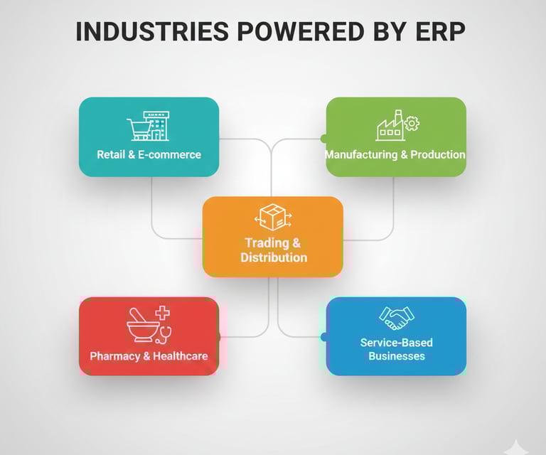 Trading & Distribution – Control procurement, sales orders, and warehousing.